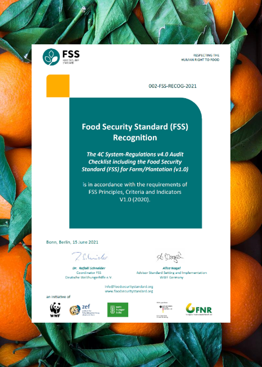By adopting the FSS, companies along the value chain can demonstrate outstanding human rights due diligence and high commitment to the Human Right to Adequate Food and the UN Sustainable Development Goals.