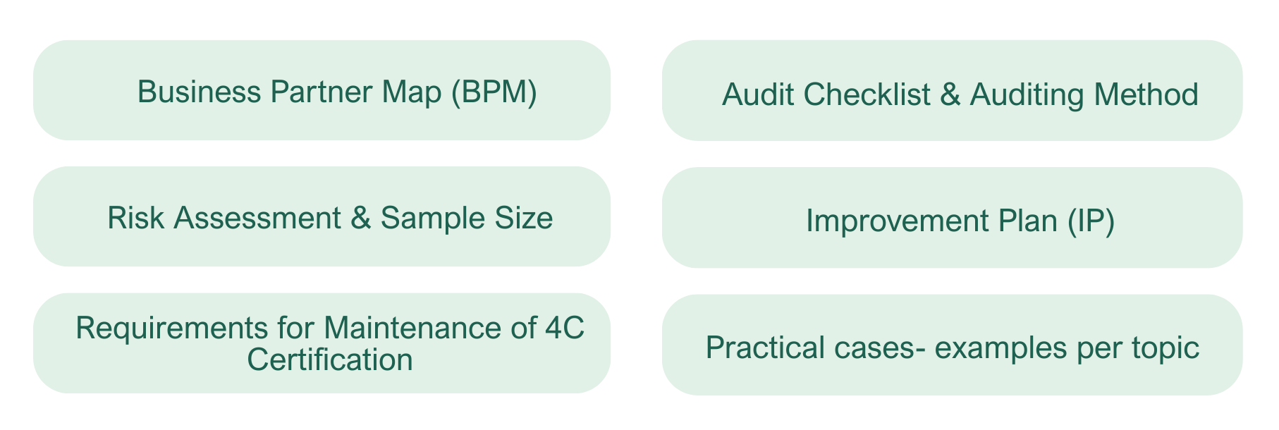 These include topics such as certification regulations, sustainability requirements, risk assessment, on-site and remote audits, issuance of certificates, supply chain traceability, and chain of custody, among many others. As a preparation for the live training, participants are required to review the preparatory content in the 4C Academy.
