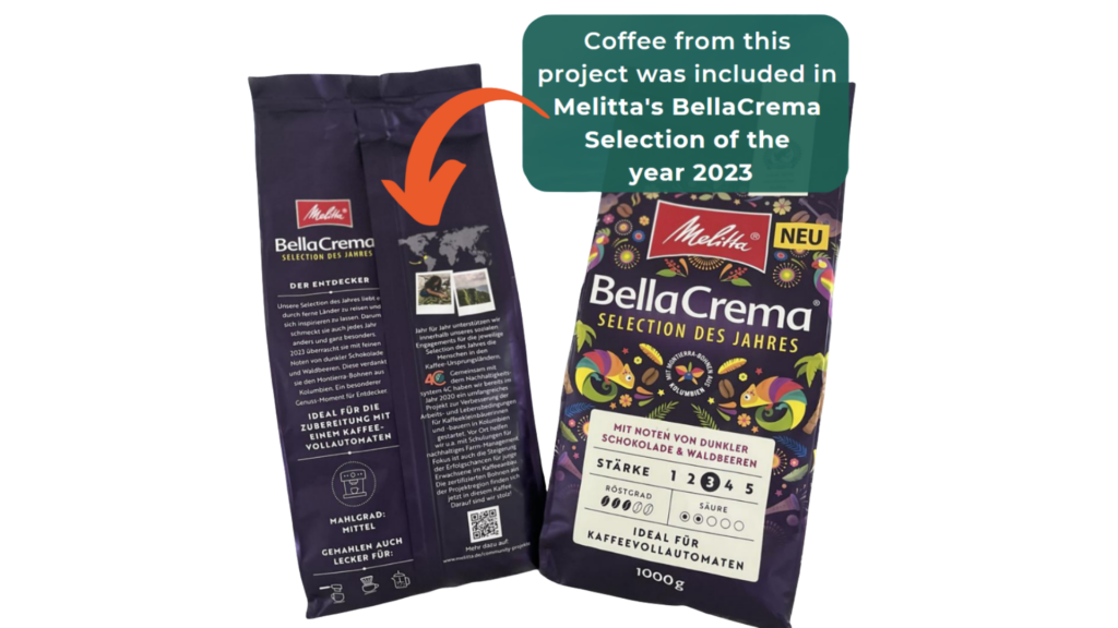 - Melitta has acquired traceable 4C certified coffee from the beneficiaries of this project at a premium price in the harvest season 2021-2022 and a second purchase in the harvest season 2022-2023. This coffee was promoted as “Selection of the Year 2023” in the European market.