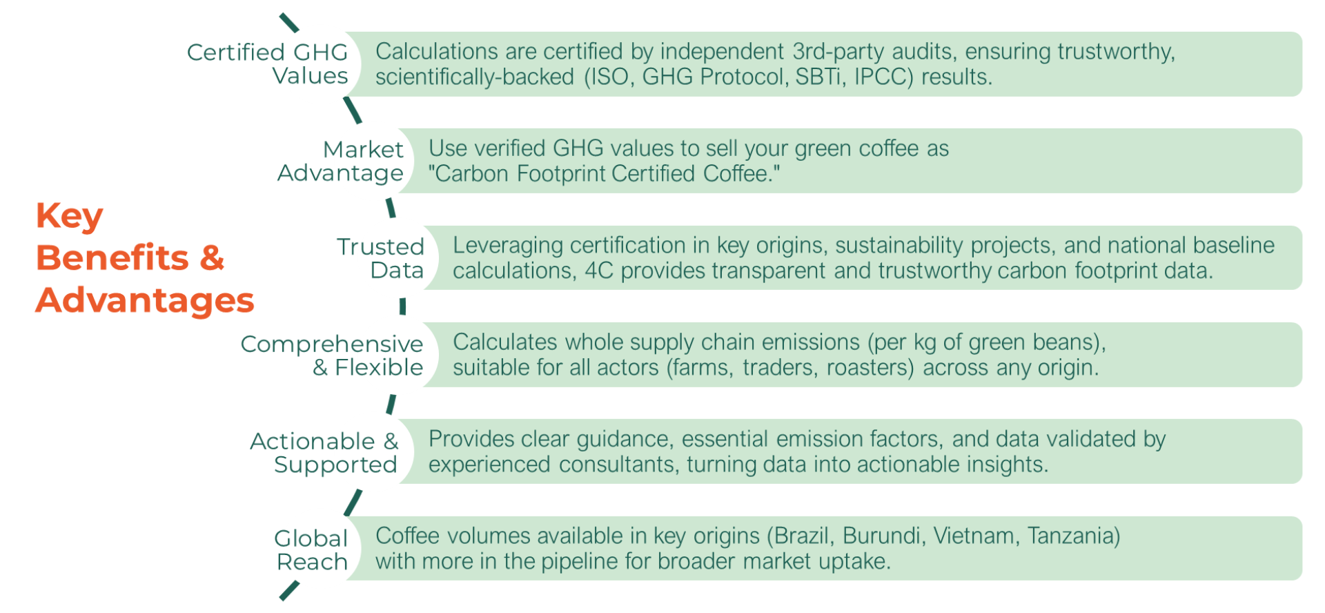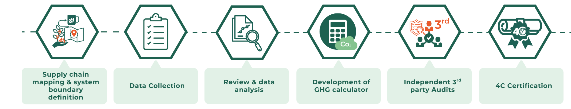 To address this, 4C has developed a dedicated carbon footprint solution for the coffee sector, built on a robust, transparent methodology and certified by an independent third party. This solution brings consistency, credibility, and actionable insights to help your coffee business progress towards a more sustainable future.